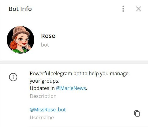 Miss Rose, the most famous Telegram bot, has